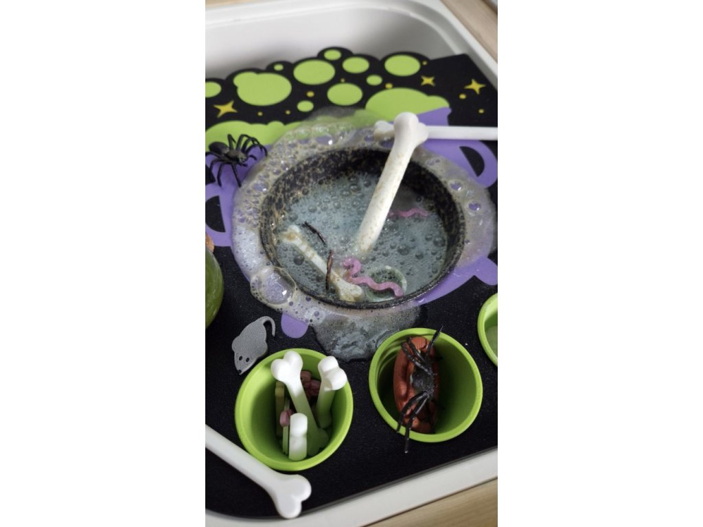 Deska do velkého Trofast boxu s velkým kotlíkem a malými kelímky. Trofast deska, která vydrží i vodu? Ano! Pojďte s námi dělat pokusy a vařit lektvary.